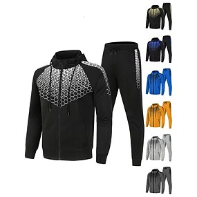 Homens Moletom Suéter Moletom com zíper completo Preto Amarelo Verde Tropa Vermelho Azul Marinha Colarinho Clerical Bloco de cor 2 Peças Desportos e Ar livre Diário Feriado Roupa de rua Básico Casual