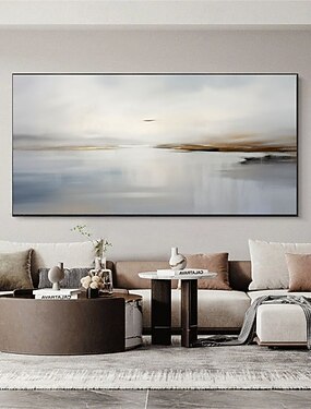 pintura a óleo dourada, pintura vintage de paisagem em tons suaves, pintura a óleo grande bege, arte de parede abstrata de paisagem marinha em tela, pintura de paisagem pintada à mão, decoração