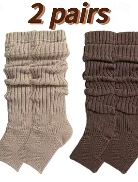 Conjunto de 2 pares de polainas femininas - proteção térmica para as pernas no inverno, em tons de bege a marrom, com design elegante e fácil de calçar, ideais para usar com botas e sapatos.