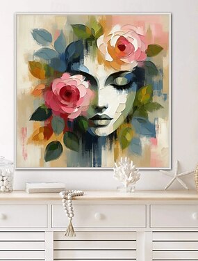 Pintura a óleo feita à mão em tela, arte de parede, decoração, retrato abstrato moderno, menina africana, flor, fada, para decoração de casa, moldura esticada, pintura pendurada/pintura enrolada, sem