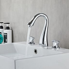 Torneira da pia do banheiro, vaso cromado de latão estilo country torneiras de banho de um furo com interruptor quente e frio e válvula