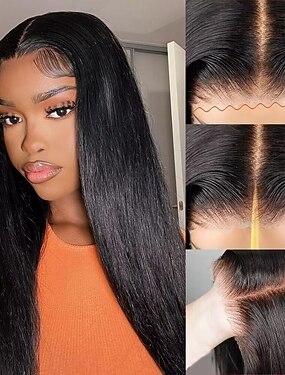 Perucas sem cola, cabelo humano pré-arrancado, pré-cortado, 4x4 hd, fechamento de renda, perucas sem cola, cabelo humano, peruca preta lisa, cabelo humano, use e vá, densidade de 180% para mulheres