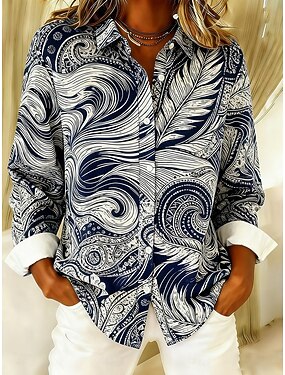 Mulheres Camisa Social Botões Imprimir Gráfico Abstrato à moda Casual Manga Longa Colarinho de Camisa Tops regulares Diário Azul Primavera Outono Inverno