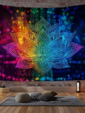 tapeçaria de luz negra uv reativa brilha no escuro festa brilhante chakra boêmio trippy misty boho lótus meditação tapeçaria pendurada arte de parede mural para sala de estar quarto