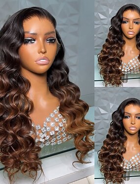 Cabelo humano remy 13x4 Lace Front Peruca Corte em Camadas Cabelo Brasileiro Ondulado Multi Cores Peruca 130% 150% Densidade do Cabelo com o cabelo do bebê Cores Gradiente Cabelo Ombre Sem cola Para