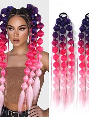 2 extensões de rabo de cavalo sintéticas coloridas com efeito bolha, extensões de cabelo trançado leves de 60 cm, acessórios para festivais e raves para meninas que querem um cabelo incrível.