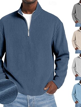Homens Camiseta de Veludo Textura Casual Ao ar livre Quarter Zip Manga Longa Moda Moderno Côr Sólida Quente Veludo Cotelê Outono Primavera & Outono Outono & inverno Normal Azul Vermelho Escuro Preto