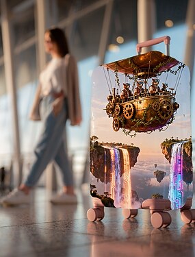 Capa protetora elástica para mala de viagem com estampa de paisagem.
