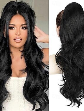 Extensão de rabo de cavalo extensão de rabo de cavalo com cordão preto para mulheres Extensão de rabo de cavalo ondulado longo de 26 polegadas clipe sintético em rabos de cavalo extensões de cabelo