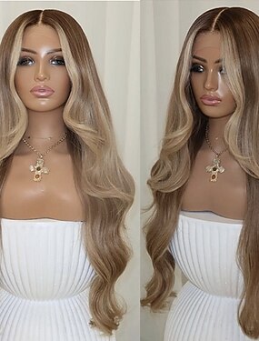 Peruca brasileira 100% virgem, loira acinzentada com mechas, fecho de renda 5x5, peruca frontal de renda 13x4, peruca ondulada multicolorida com baby hair, linha capilar natural para mulheres.