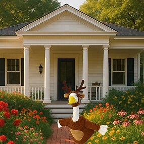 Roupa de rena para varanda com chifres, vestimenta de rena de pelúcia marrom para estátua de ganso de concreto de 58 a 63 cm (23 a 25 polegadas), decoração natalina de inverno para jardim, somente a
