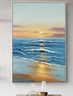 pintura a óleo feita à mão arte de parede pintada à mão abstrata seascape pôr do sol azul oceano decoração de casa decoração moldura esticada pronta para pendurar