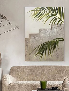 Pinturas a óleo artesanais em tela, arte de parede, decoração moderna estilo wabi-sabi, folhas grandes para decoração de sala de jantar, pintura enrolada sem moldura e sem esticar