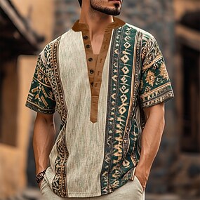 Homens Geométrica Étnico Camiseta Camisa Henley Camisetas Manga Curta Designer Básico Boêmio Ao ar livre Casual Diário Verão Verde Oliva Castanho Escuro Marron cáqui Henley Camiseta Henley