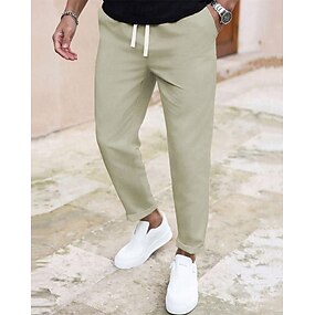 Homens Calças Calça verão Calças largas Calças de praia Cintura elástica Perna reta Tecido Conforto Respirável Comprimento total Casual Diário Feriado Férias Moda Azul Preto Sem Elasticidade