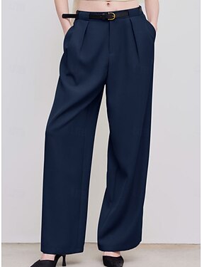 Mulheres Perna larga Calças Casual Diário Longas Tecido Bolsos laterais Respirabilidade Confortável Micro-Elástica Final de semana Preto Branco Azul Marinho Verde Primavera Verão Normal