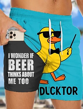 Homens Pato Gíria engraçada animais de desenho animado Shorts Forrados Shorts de Natação 2 em 1 Shorts de Natação Cintura Média Havaiana férias na praia Bolsos laterais Com forro de compressão