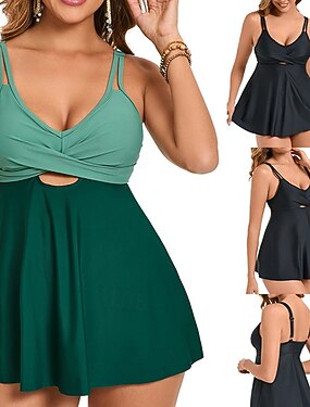 Mulheres Roupa de banho Tankini 2 Peças Bloqueio de cores Proteção UV Elástico Sem Manga Roupa de Banho roupa de banho Surfe Mergulho Natação Verão