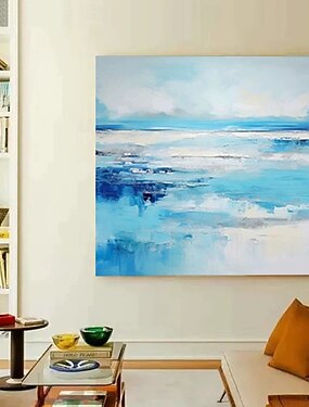 Pintura a óleo sobre tela, com vista para o mar e ondas, pintada à mão pela Mintura. Arte moderna de parede, quadro abstrato texturizado para decoração de casa. Pintura enrolada, sem moldura e sem