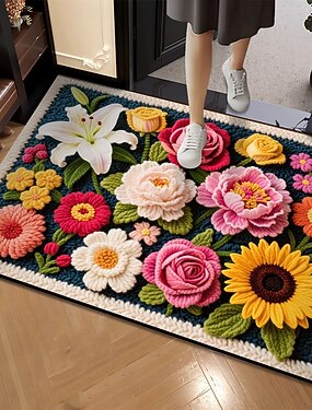 Tapete de entrada em terra diatomácea, antiderrapante, para banheiro, com estampa de flor aquática, fácil de cuidar, absorvente, de secagem rápida, ideal para uso doméstico.