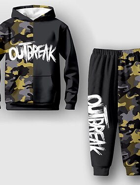 Para Meninos 3D Dinossauro camuflagem Conjunto de moletom e calça de moletom Conjunto Manga Longa impressao 3D Outono Inverno Ativo Moda Legal Infantil 3-12 anos Gola Redonda Ao ar livre Férias Rua