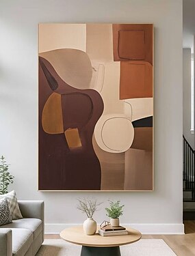 Pintura abstrata grande, feita à mão, em tons de laranja, marrom e bege. Pintura abstrata moderna e minimalista com textura, em tela, ideal para decoração de parede de sala de estar, escritório ou