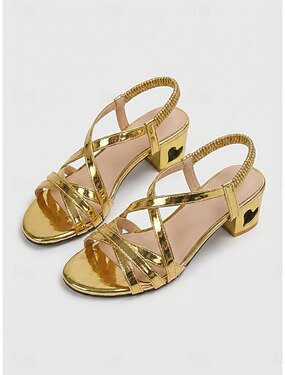Sandálias femininas douradas de salto baixo com strass - elegantes sapatos slingback com recortes florais e salto bloco confortável, estilo perfeito para a mãe da noiva em um ambiente rústico de