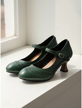 Sapatos Mary Jane femininos vintage verde-escuros dos anos 1950 - elegantes sapatos brogue com fivela para festas retrô e uso no escritório. &estilo clássico