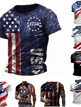 4 de Julho de 2026 250º Dia da Memória Camiseta Masculina com Estampa 3D da Bandeira dos EUA Decote Redondo Manga Curta Rua Dia a Dia