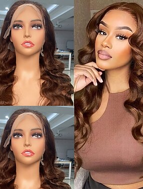 Cabelo Humano Fechamento 5x5 13x4 Lace Front Peruca Parte livre Cabelo Brasileiro Onda de Corpo Marrom Claro Peruca 150% 180% Densidade do Cabelo com o cabelo do bebê Riscas Naturais 100% Virgem Sem