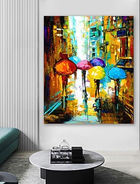 Garota na cidade chuvosa, tela pintada à mão, garota na rua com guarda-chuva, chuva, decoração abstrata, parede de rua, garota na cidade de Nova York, quarto de meninas, arte de parede, decoração de