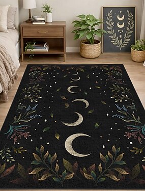 Tapete botânico com cogumelos e flores silvestres, com estampa floral e de jardim iluminado pelo luar, folhagem e flores noturnas. Elegante e durável, este tapete é uma peça de decoração para casa,