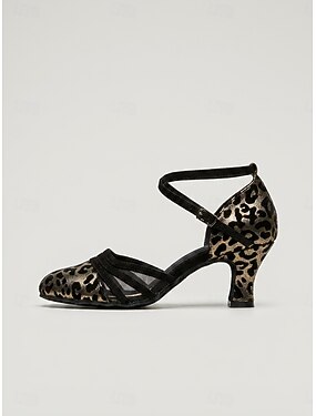Sapatos de dança de salão femininos com estampa de leopardo – sapatos de salto padrão com bico redondo e tira no tornozelo, ideais para prática profissional. & desempenho