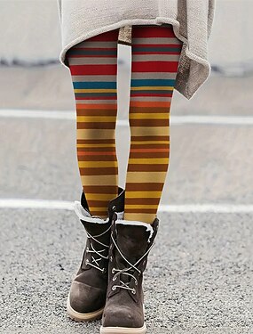 Mulheres Calças Leggings Leggings aconchegantes Roupa de rua Casual Comprimento total Cintura Alta Listra Cintura elástica Imprimir Respirabilidade Confortável Com Stretch Férias Rua Roupa Diária