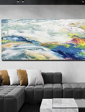 Pintura a óleo artesanal decoração de arte de parede de lona abstrata pintura de paisagem azul para decoração de casa rolada sem moldura pintura não esticada