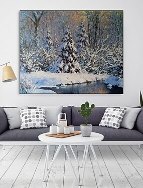 Pintura a óleo artesanal decoração de arte de parede de lona decoração de natal cena de neve para decoração de casa rolada sem moldura pintura não esticada