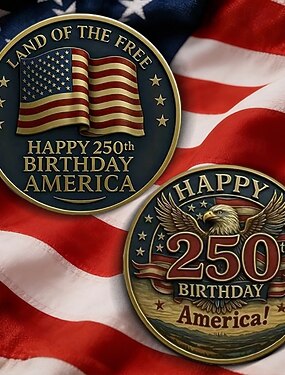 Moeda comemorativa do 250º aniversário dos EUA, com a bandeira americana e a majestosa águia, para marcar 250 anos de história. Item para presente.