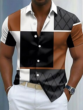 Homens Xadrez Camisas Polo Waffle Camisa de golfe Manga Curta Camisas polo Camisas de colarinho Vintage Casual Roupas de férias Traje formal Roupas para festivais Impressão 3D Botões Azul Preto Rosa