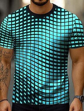 Homens Geométrica 3D Camiseta Manga Curta Camiseta Impressão 3D Gola Redonda Camisa Designer Rua Casual Diário Amarelo Azul Verde Verão Primavera Roupa S M L XL XXL XXXL
