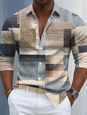 Homens Geométrica Bloco de cor Retalhos Camisa Social camisa de botão Manga Longa Moda Casual Ao ar livre Dia a Dia Primavera Outono Aberto para a Lateral Impressão 3D camisas de colarinho Azul Verde