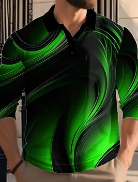 Homens Geométrico Pólo Manga Longa Colarinho Clerical Roupa Esportiva Férias Roupa Esportiva Casual / Diário Impressão 3D Primavera Outono Inverno Preto Azul Verde