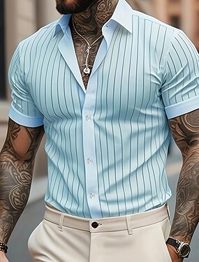 Homens Geométrica Listrado Camisa Social camisa de botão Camisa social casual Manga Curta Moda Casual Diário Férias Verão Primavera Aberto para a Lateral Impressão 3D camisas de colarinho Azul Rosa