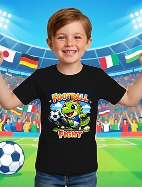 100% Algodão Infantil Para Meninos Preto Gráfico Dinossauro Futebol Camisetas de futebol Camisa Blusa Gola Redonda Manga Curta Ao ar livre Dia a Dia Moda Roupa de rua Designer Estampado Verão