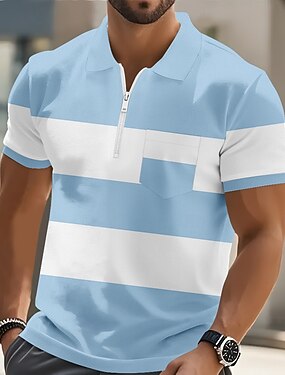 Homens Tiras Horizontais Camisas Polo Manga Curta Camisas polo Camisas de colarinho Business casual Ao ar livre Roupa Esportiva Feriado Bolsos Impressão 3D Polo com fecho de correr de um quarto