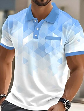 Homens Geométrico Pólo Manga Curta Camisas polo Lapela Casual Roupa Esportiva Roupa Diária Impressão 3D Botões Verão Azul Céu Azul Cinzento