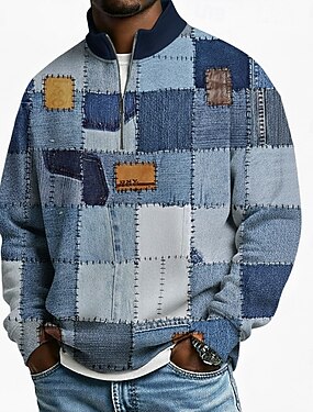 Homens Xadrez Camisas Polo com zíper Manga Longa Camisas polo colarinho do vovô Casual Escola Roupa Esportiva Feriado Roupa Diária Impressão 3D Polo com fecho de correr de um quarto Primavera Outono