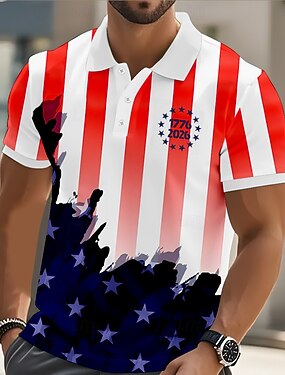 4 de julho de 2026 250º Homens Bandeira americana Camisas Polo Manga Curta Camisas polo Camisas de colarinho Casual Roupa Esportiva Botões Primavera Verão Azul Branco Vermelho