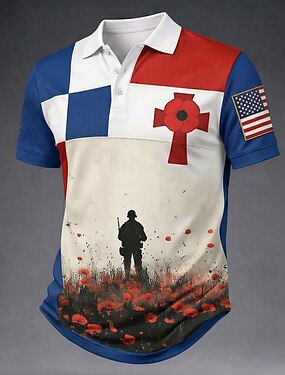 4 de julho de 2026 250º Masculino American US Flag Pólo Manga Curta Camisas polo Aberto para a Lateral Casual Casual / Diário Festival Botões Verão Rubi Vermelho