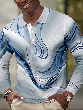 Homens Geométrico Mármore Camisas Polo Waffle Manga Longa Camisas polo Camisas de colarinho Casual Roupa Diária Botões Primavera Outono Inverno Azul Roxo Verde