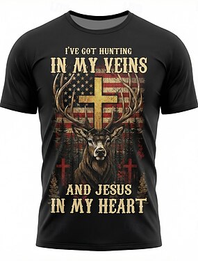 Homens Cruz cristão Caça Camiseta Manga Curta Camiseta Impressão 3D Gola Redonda Camisa Religioso Patriótico Casual Diário Esportes Preto 1 Marron Preto 2 Verão Primavera Roupa S M L XL XXL XXXL